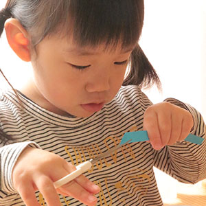 こひつじ保育園ではこどものサイズの本物の道具を準備し、やりたいことを心ゆくまで頭、指先を使い、もっとやりたい⇒くり返す⇒ひとりでできたをたくさん経験していきます。