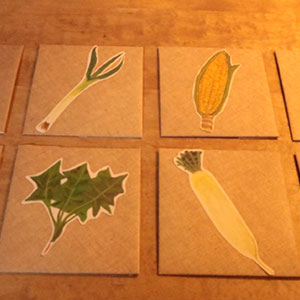 身のまわりにあふれることばを自由に使えるようになるように、絵本やカード、ミニチュア、本物の野菜やくだものを環境に準備し、丁寧な言語活動をおこないます。